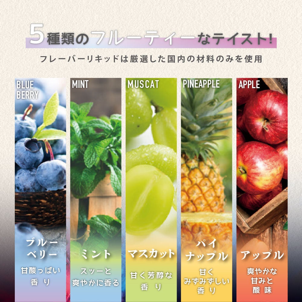 - 選べる5種の味(ブルーベリー・ミント・マスカット・パイナップル・アップル)