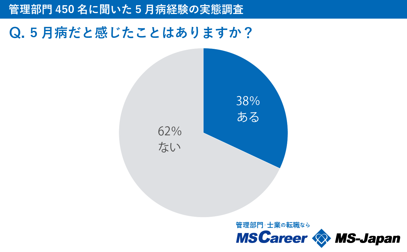 今回の調査では、管理部門の38%が5月病を経験したことがあることがわかりました。