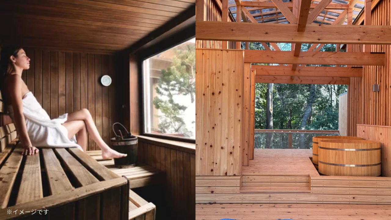 当施設では、最高110℃の高温サウナや地下水を汲み上げた水風呂、アロマロウリュを組み合わせたリフレッシュ体験をご提供予定です。サウナの後は森に包まれるネットベッド付きの外気浴空間で、極上のリラックスタイムをお楽しみいただけます。