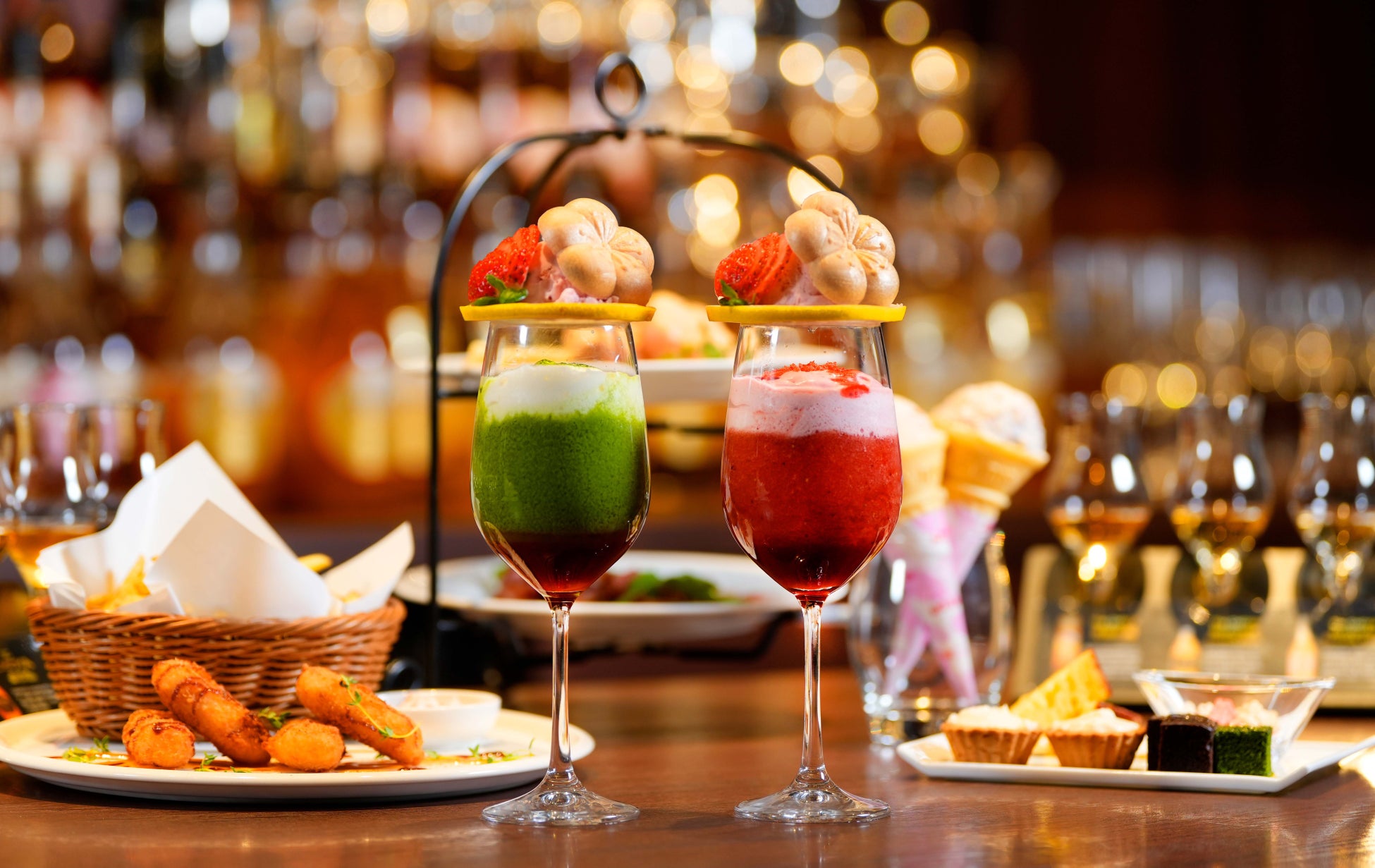 新作カクテル2品は、アルコール入りの酔うタイプとノンアルコールの酔わないタイプからお選びいただけます。また、梅をアレンジしたフードや梅酒との相性を考えたオードブルやスイーツに、飲食店でしか味わえない限定品の利き梅酒が楽しめるフライトセットや人気の梅酒カクテルにノンアルコール梅酒カクテルなど、100種類以上のドリンクが2時間30分飲み放題 (ラストオーダー30分前)の「梅づくしアフタヌーンティー&ハイティー」コースの選べるデザートとしてもお楽しみいただけます。