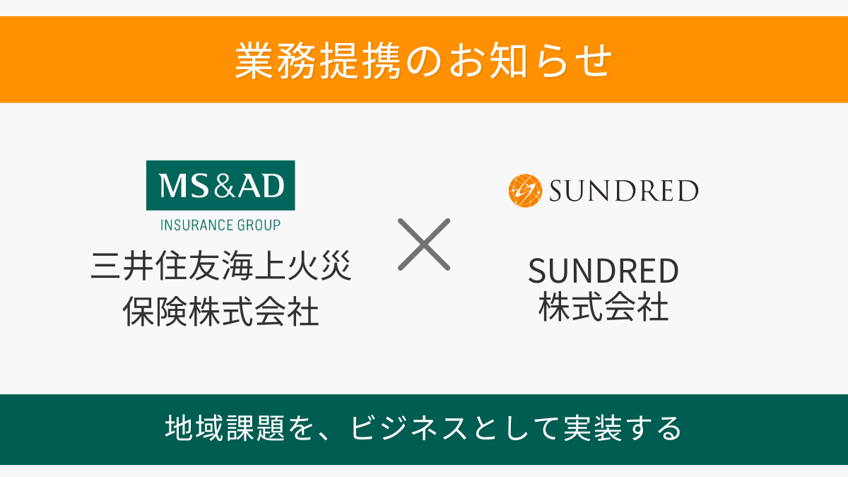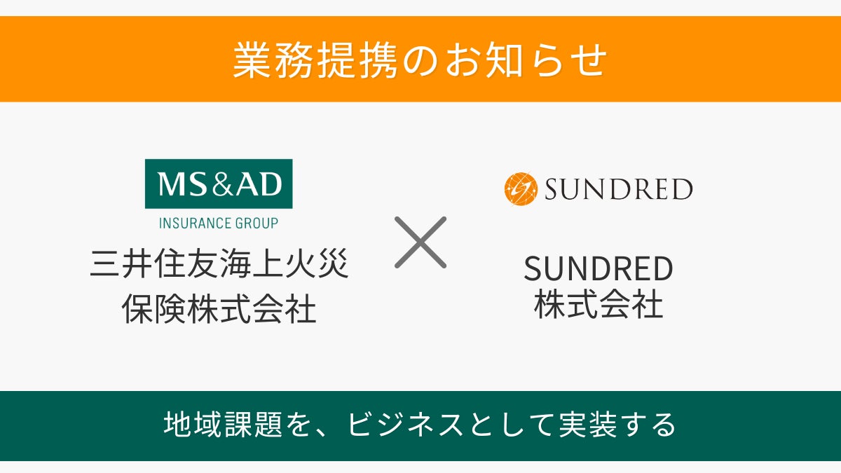 100個の新産業の共創を目指す「新産業のエコシステムビルダー(※1)」SUNDRED株式会社(所在地:東京都渋谷区、代表取締役:留目 真伸、以下「SUNDRED」)は、地域課題解決と持続可能な社会の実現を推進する損害保険会社、三井住友海上火災保険株式会社(本社:東京都千代田区、以下「三井住友海上」)と、地域課題の解決と新たな産業創出を目的とした業務提携契約を2026年2月27日に締結いたしました。