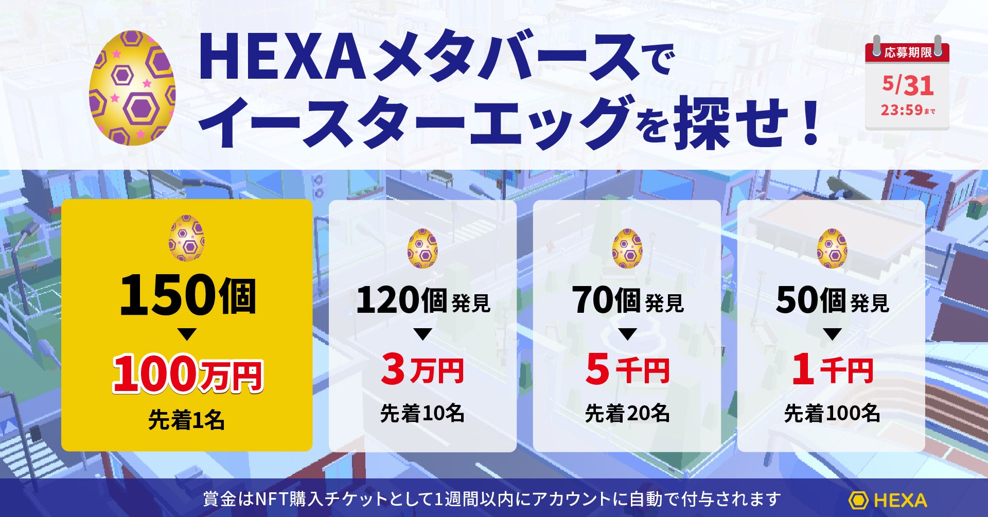 【キャンペーン2】HEXAメタバースでイースターエッグを探して150万円分プレゼント!