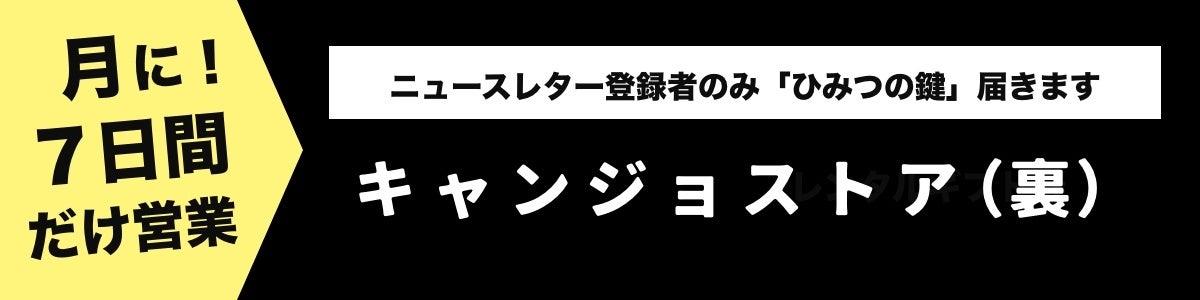ショップへ入店するための「ひみつの暗号」は、Instagram「キャンジョ」@camjyo(https://www.instagram.com/camjyo/)をフォローしている方のみ登録できる「キャンジョストア(裏)ニュースレター」から届きます。登録者限定で特別な情報が届くため、キャンプ・アウトドア愛好家にとっては見逃せません。