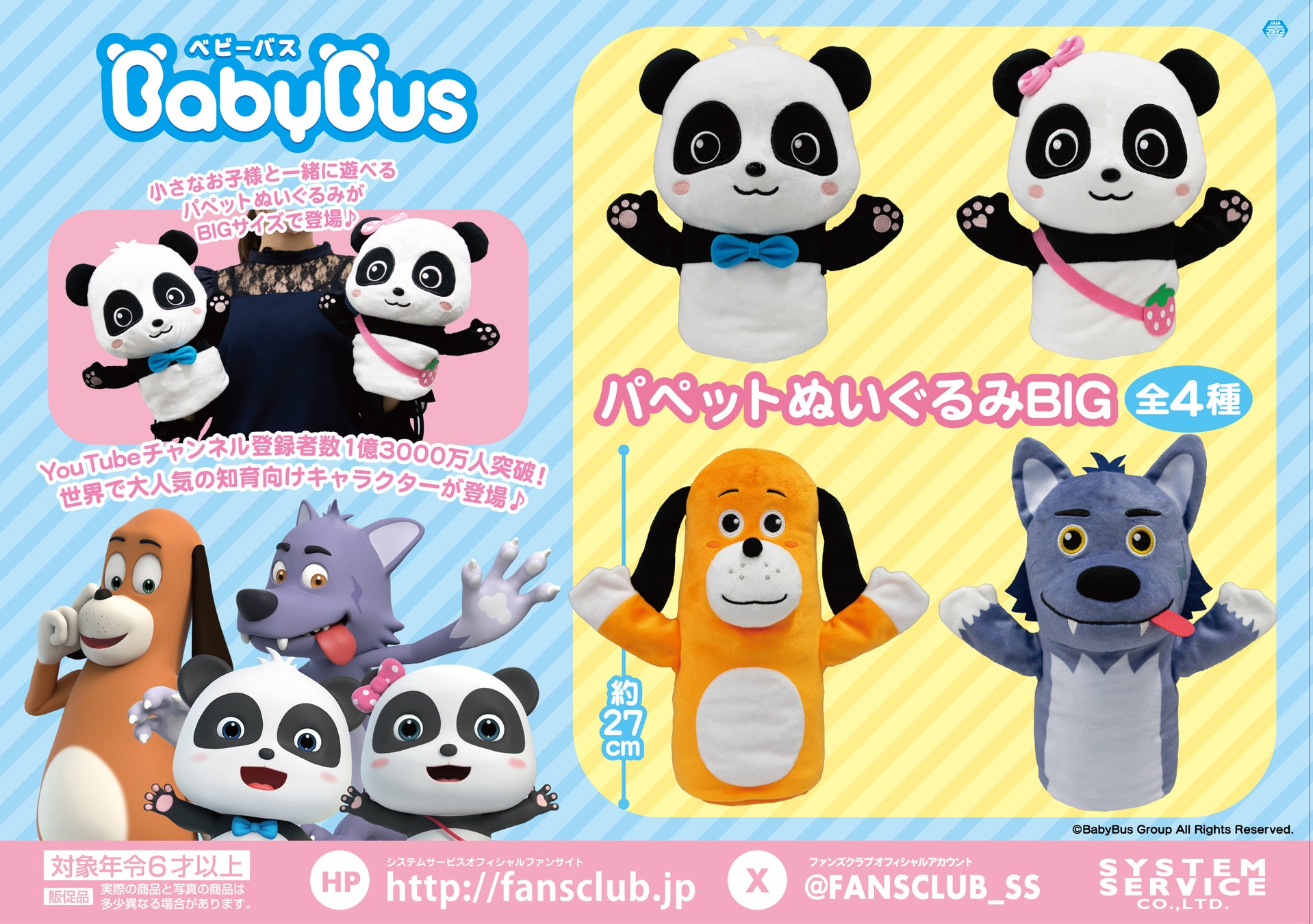 システムサービス株式会社(本社:東京都豊島区、代表取締役社長:田村宗弘)は、「BabyBus」のプライズ商品を2024年1月2週より順次アミューズメント施設にて展開いたします。