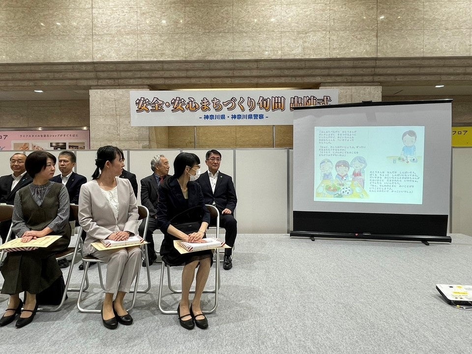 神奈川県横浜市にて、“安全・安心まちづくり旬間(10/11~10/20)”の出陣式が開催され、「特殊詐欺と絆」をテーマとして募集した絵本の表彰式が行われました。