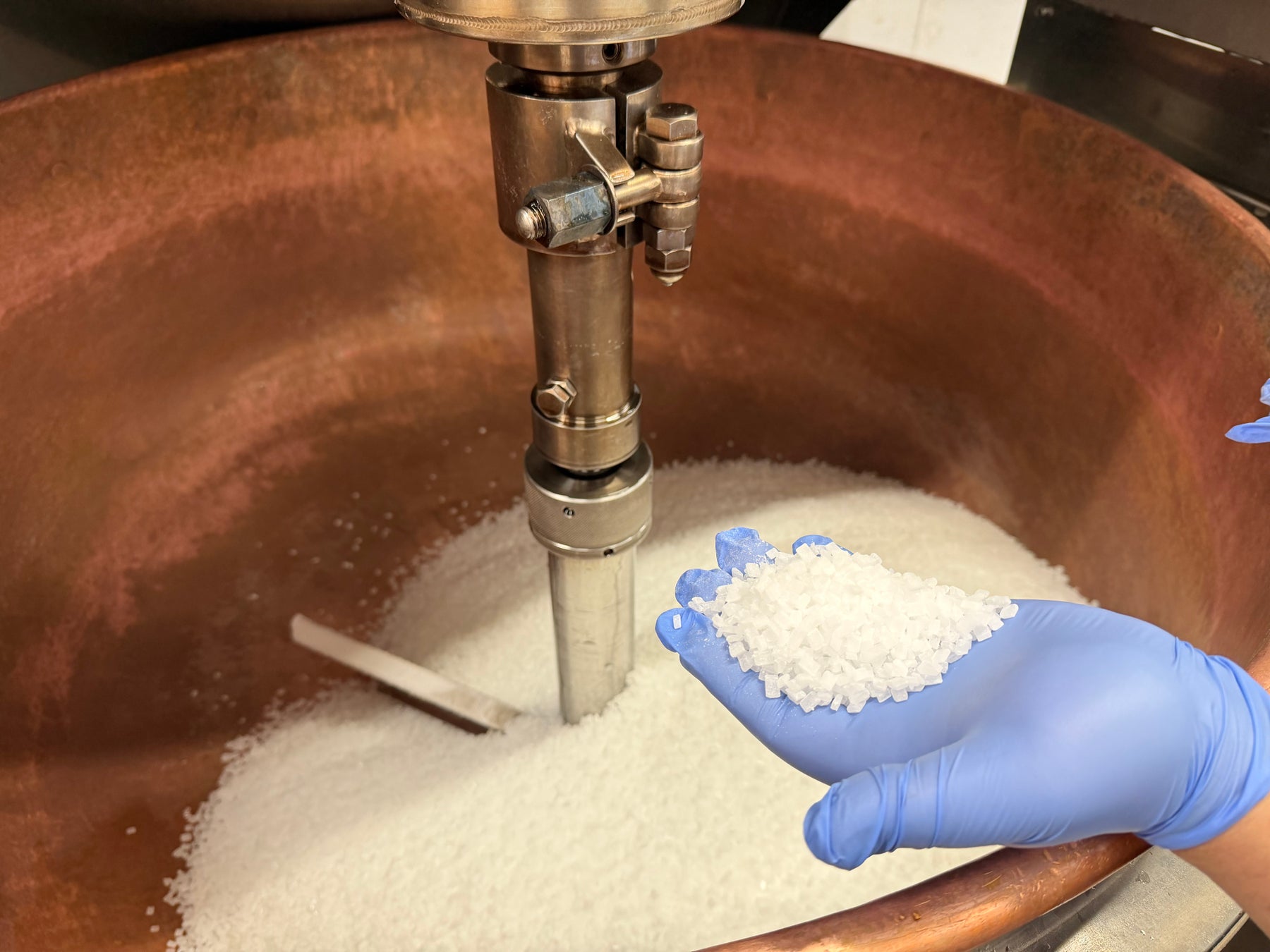 製餡に使用する砂糖は、この平均粒径3.7ミリのサイズにまで精製された、透明度の高い最高純度の白ザラ糖である「鬼ザラ糖」を使うことで、一般の砂糖では得られない爽やかな甘みを追及しています。