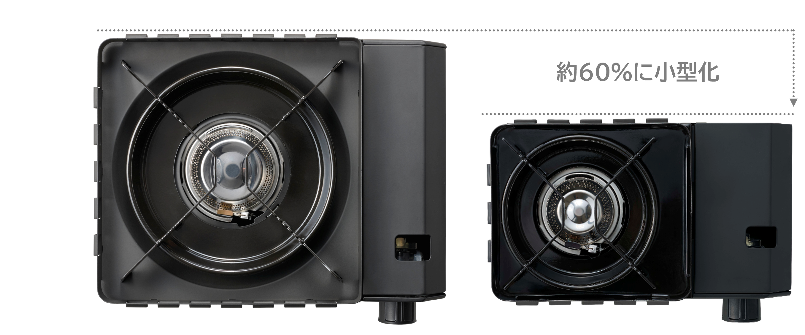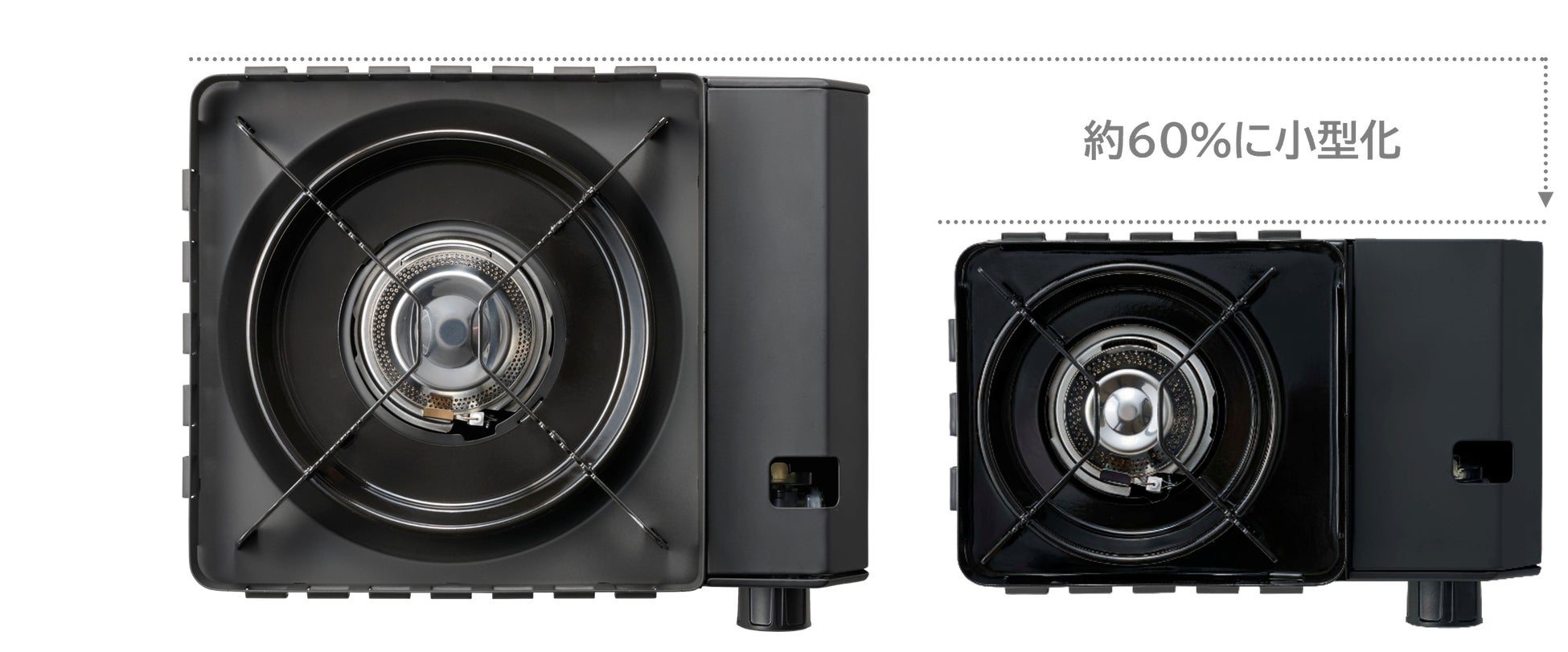 点火つまみを丸型に刷新し、スリムなデザインと操作性を両立しています。また、「点火/消火」の文字「ON/OFF」で表示し、スマートな印象に仕上げました。