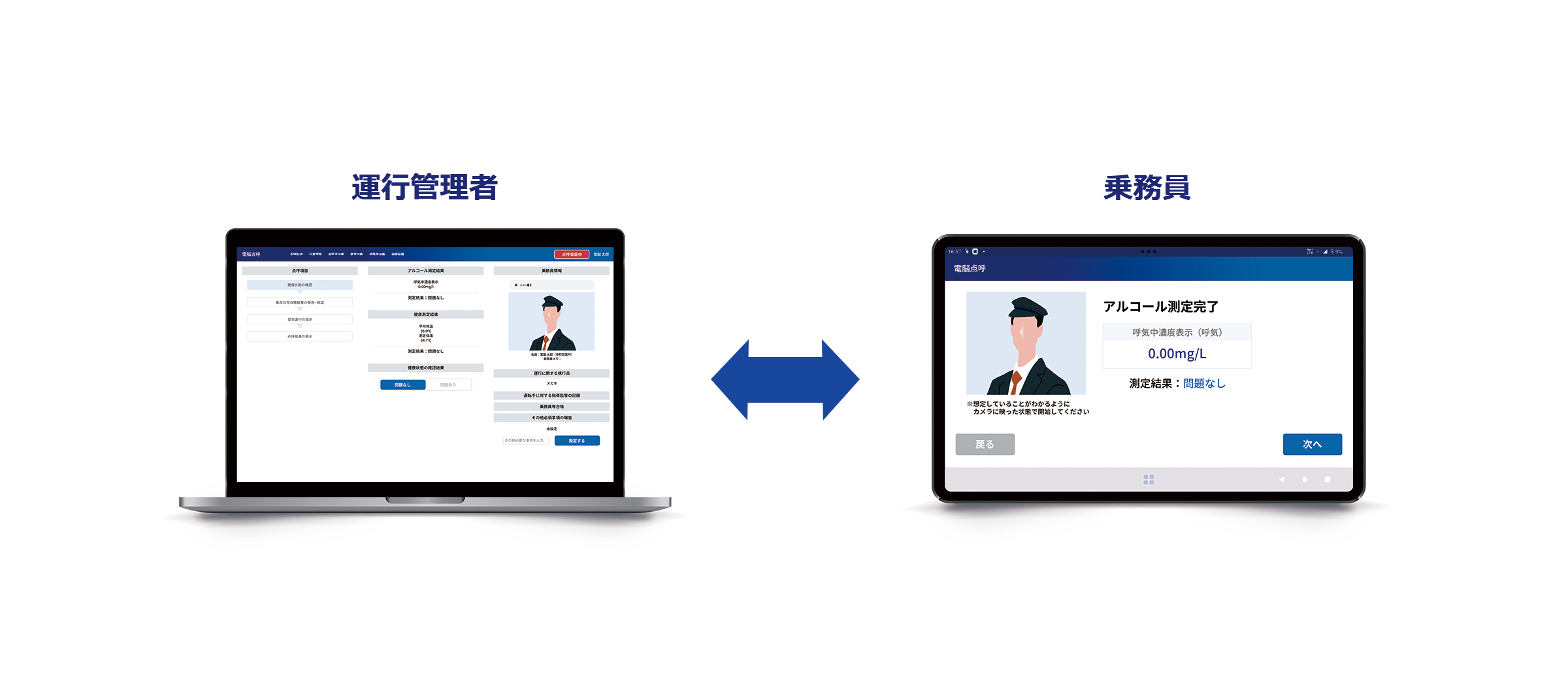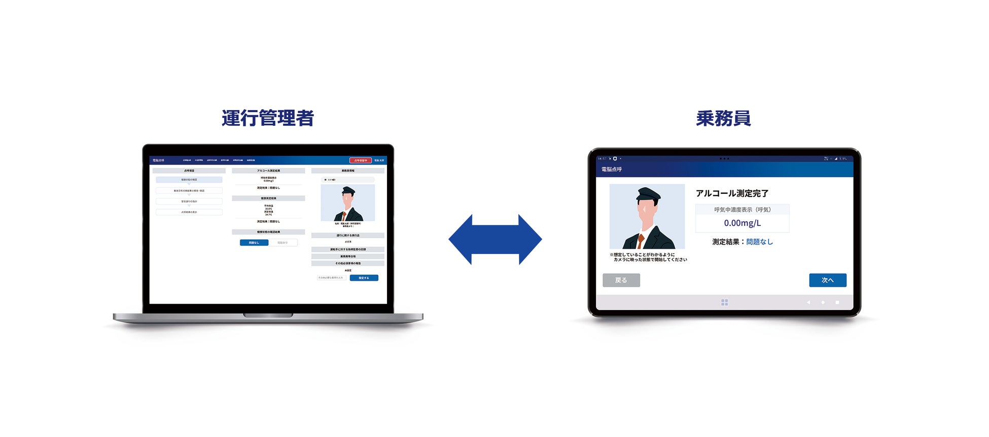 遠隔点呼および自動点呼の双方に対応しており、事業規模や勤務形態に応じた柔軟な点呼運用を実現します。