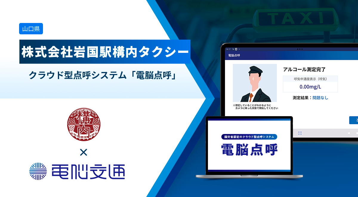 タクシー・交通業界のDXを推進する株式会社電脳交通 (本社:徳島県徳島市、代表取締役社長:近藤 洋祐、以下「電脳交通」)は、株式会社岩国駅構内タクシー(本社:山口県岩国市、代表取締役社長:原 真、以下「岩国駅構内タクシー」)がクラウド型点呼システム「電脳点呼」を導入し、業務前・業務後自動点呼の運用を開始したことをお知らせいたします。