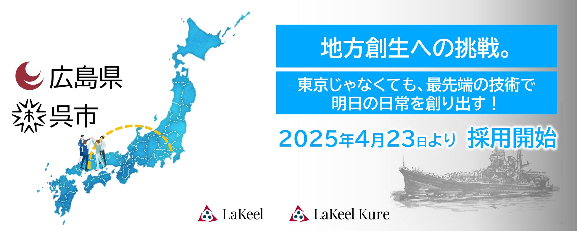企業のDX推進を支援する株式会社ラキール(本社:東京都港区、代表取締役社長:久保 努、以下「ラキール」)は、広島県呉市に新たな拠点「呉オフィス」を開設します。また同時にラキールの100%子会社である株式会社ラキール呉(代表取締役社長:松本 英晴、以下「ラキール呉」)を設立したことをお知らせします。呉オフィス及びラキール呉では、LaKeel DXをはじめとする自社製品のシステム開発を行う予定です。