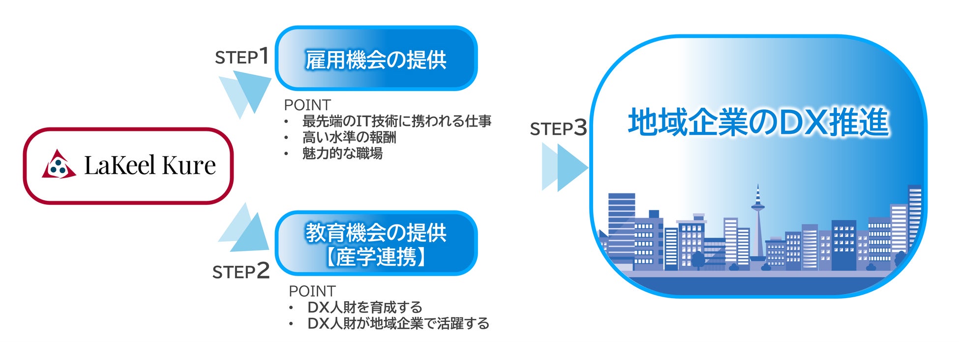 私たちはこれまで多くの企業様のDX推進をご支援してきました。また、毎年50~60名程度の新卒社員を採用し、DX人財の育成にも取り組んでまいりました。そのノウハウを生かし、呉でも魅力的な仕事を創出し、DX人財を育て、地域企業のDXを推進したいと考えています。その結果、若者の転出を防ぎ、さらには若者や移住者を増やしていくことで、地方創生に貢献してまいります。