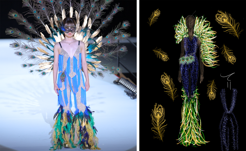 大会で何かの賞を取ると自分に自信がつくと思い、挑戦しました。2人で制作するという難しい事に初めて挑戦し、夏休みという会えない期間が1番大変でした。リハーサルで初めて衣装と孔雀の羽根をあわせて、想像よりいいものが出来たと感じ嬉しかったです。