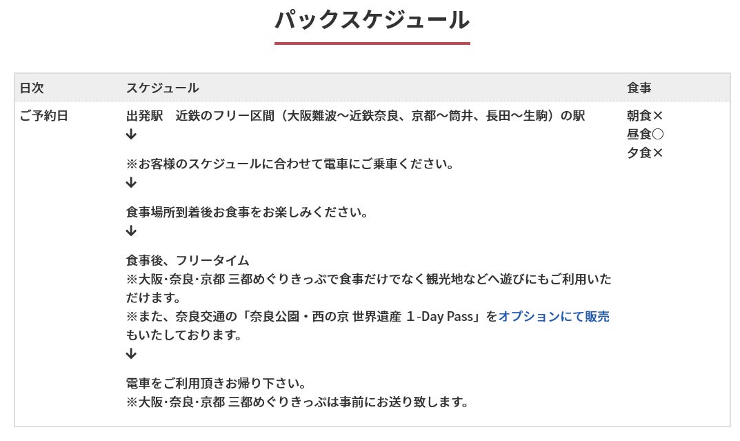 - 近鉄電車で行く「選べるレストランでお食事」日帰りパックについて