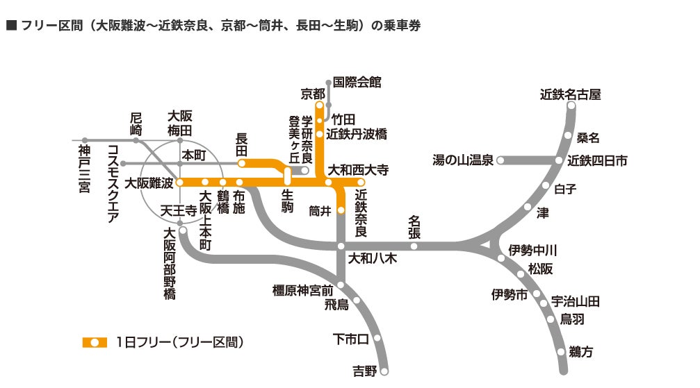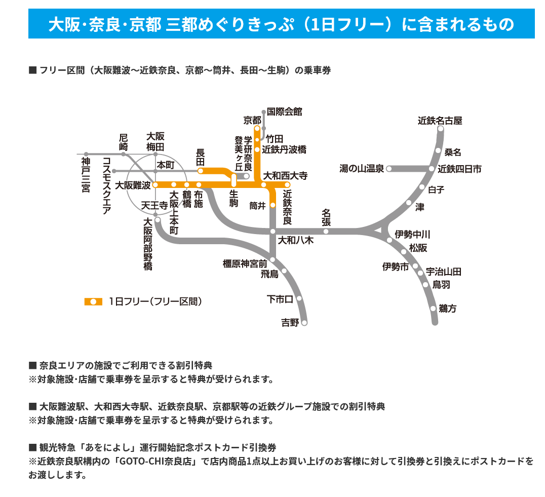- 大阪・奈良・京都 三都めぐりきっぷ(1日フリー)に含まれるもの