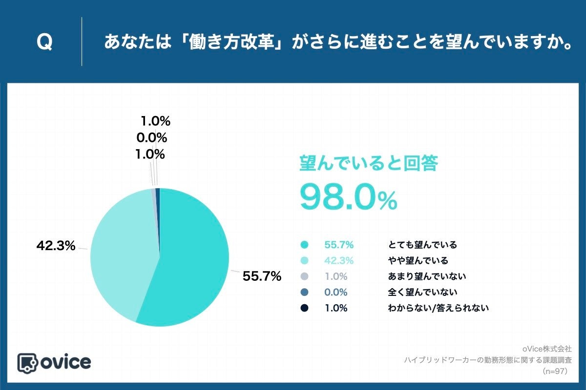 ■98.0%が「働き方改革がさらに進むことを望んでいる」と回答