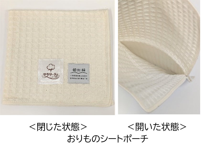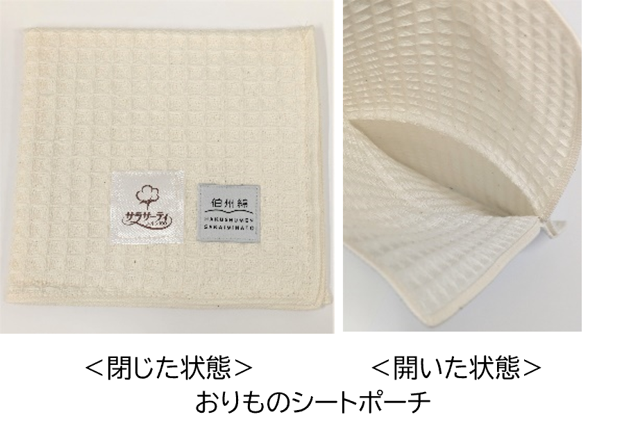 当日参加者には小林製薬の商品詰め合わせとともに、アサヒユウアスが製作をプロデュースした境港市の「伯州綿」を使ったおりものシートポーチが参加特典として配布されます。このポーチの縫製加工は境港市に隣接する松江市の就労継続支援B型事業所「すずしろ」が担いました。また「森のタンブラー 伯州綿」は、従来のコットンのイラストに「サラサーティ」ブランドのロゴを加えたオリジナルデザインを、「サラサーティ」のノベルティとして今後展開予定です。