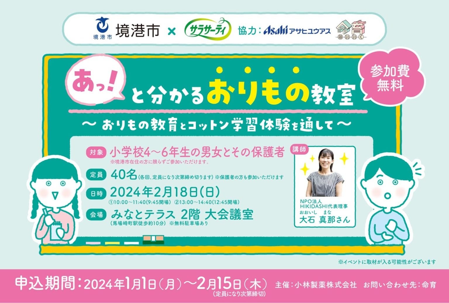 申込フォーム :<1部>https://meiiku.com/event/kobayashi_sakaiminato01/