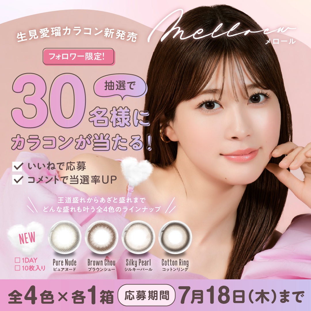「めるる」こと生見愛瑠プロデュース&イメージモデルカラコン新ブランド 『melloew(メロール)』が本日2024年7月8日(月)より販売開始!