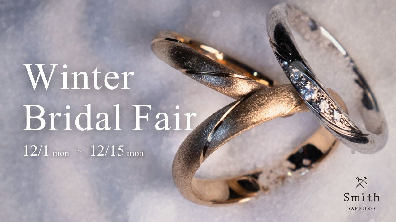 株式会社一宝(所在地:北海道札幌市)が運営する手作り結婚指輪・婚約指輪専門店『工房Smith札幌本店』は、2025年12月1日(月)〜12月15日(月)の期間限定で「Winter Bridal Fair」を開催いたします。