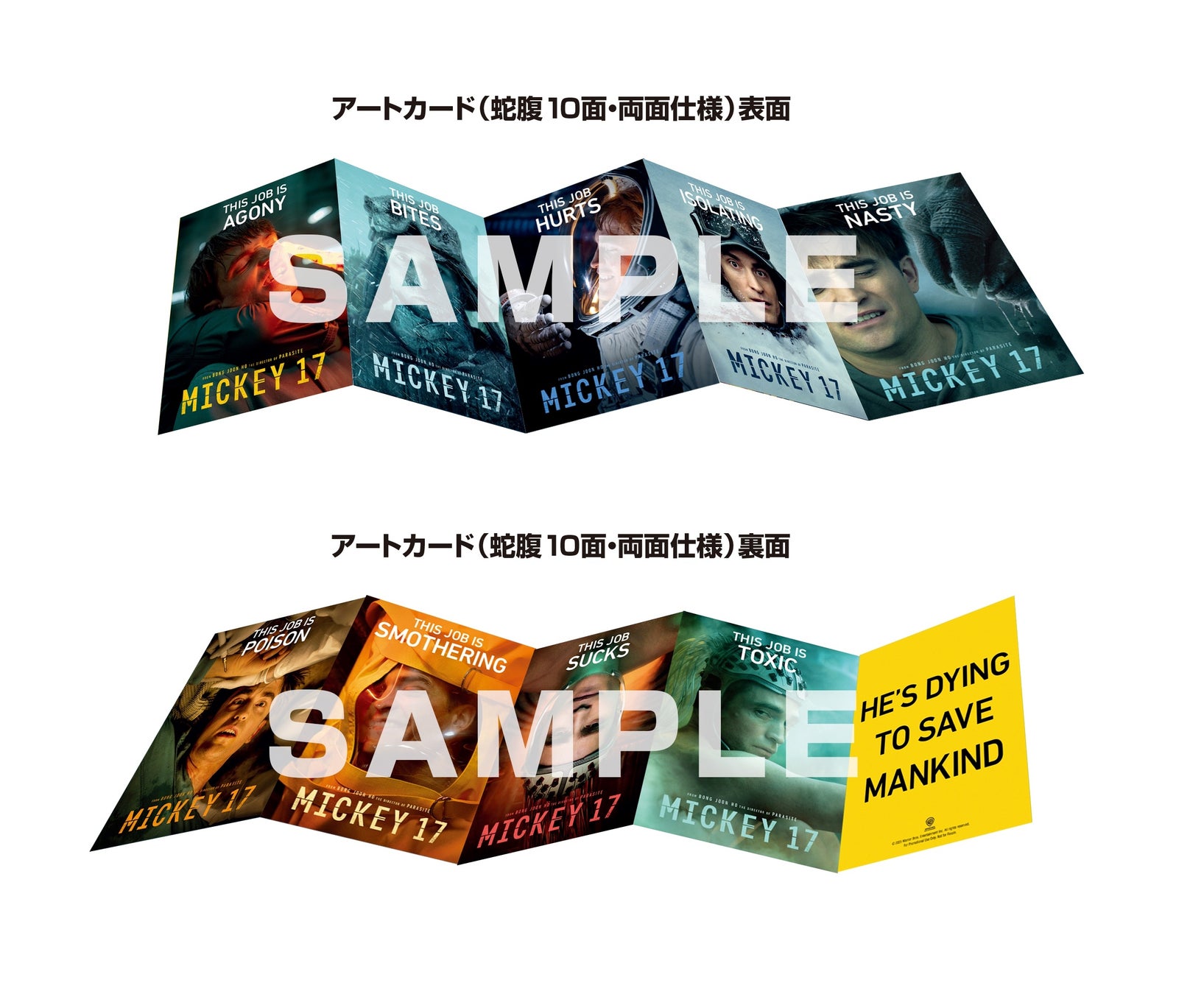 ブルーレイとDVDには、作品を彩るキャストの本作への意気込みや熱量の⾼さが伝わる メイキング、ポン・ジュノ監督の細部へのこだわりが詰まったコメント、ストーリーボードに沿って ショットを撮る独⾃の撮影⽅法など、「ミッキー17」の稀有な世界により没入できる貴重な 映像特典が約34分収録されています。さらに、ブルーレイ&DVDにはミッキ ーの様々な表情が楽しめるクールな初回封入特典のアートカードがついて おり、店舗別オリジナル特典として対象店舗であるAmazon.co.jpでは A3ビジュアルシート2枚セットを、楽天ブックスでは2L判ブロマイド2枚セット を先着でプレゼントいたします︕ ぜひ、今すぐ予約を︕