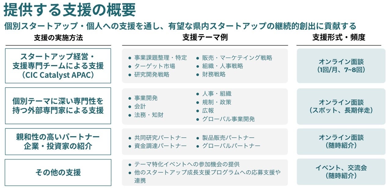 CIC Catalyst APACは千葉県「革新的スタートアップ成長促進事業」の委託先として選定され、本プログラムの企画提案をしております。
