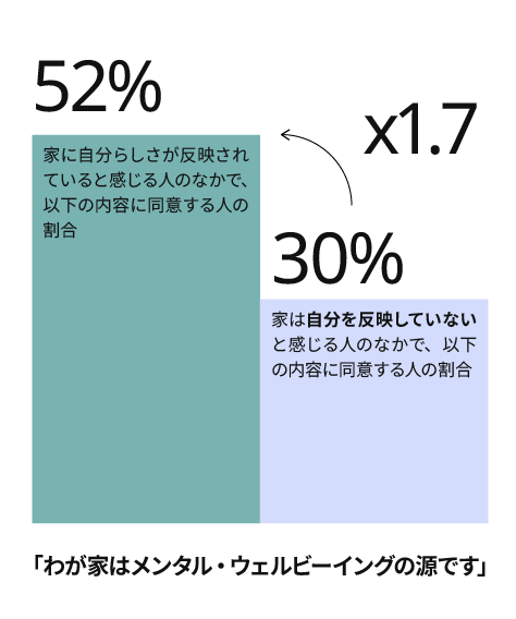 - 家が自分らしさを表現していると感じている日本人は37%、世界平均は58%