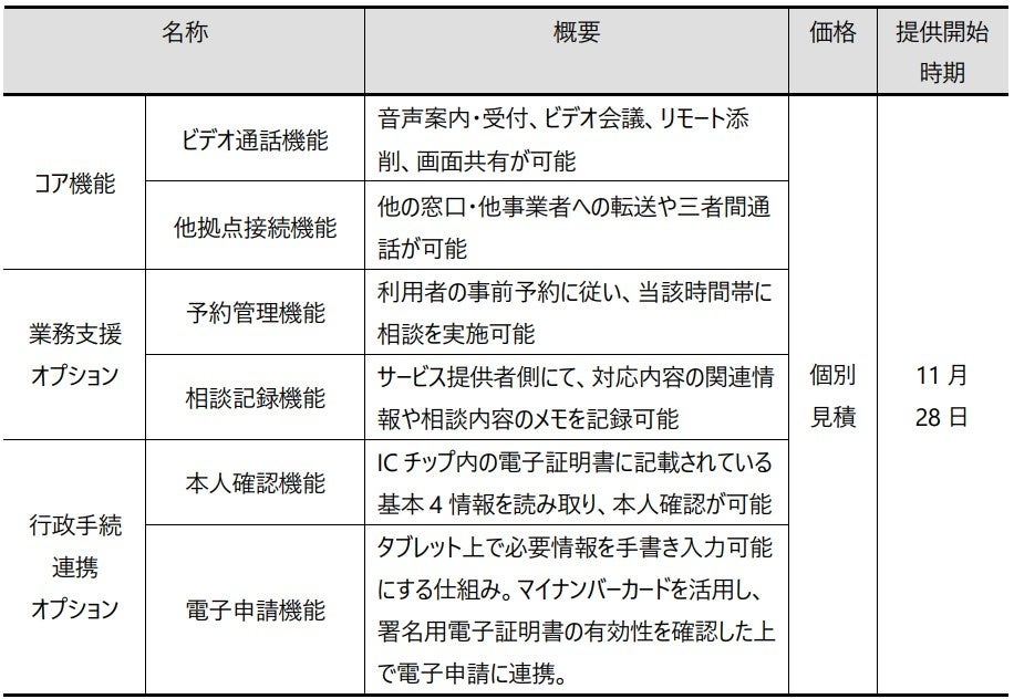 ■「汎用デジタル窓口」の主な機能、価格および提供開始時期