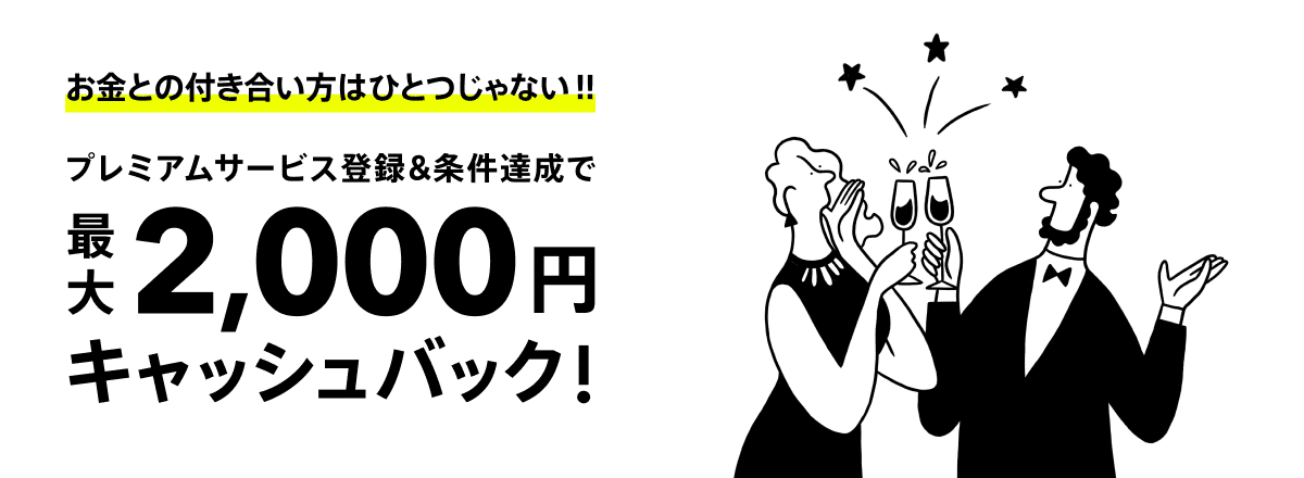 内容 | キャンペーン期間中の条件達成ごとに現金500円キャッシュバック (4つの条件達成で現金最大2,000円キャッシュバック) |