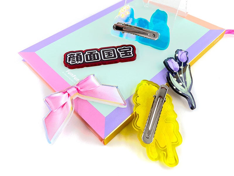 遊び心溢れる新商品!アクリル製のヘアクリップを1個からオリジナルで制作いたします。