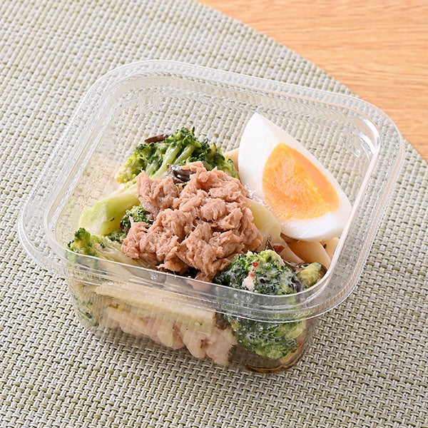 内容:「シーチキンマイルド」と「ふじっ子 塩こんぶ」を使用したサラダです。シーチキンとフジッリサラダに、塩こんぶとブロッコリー、ゆで卵を組み合わせたおかずにもおつまみにもなる仕立てです。