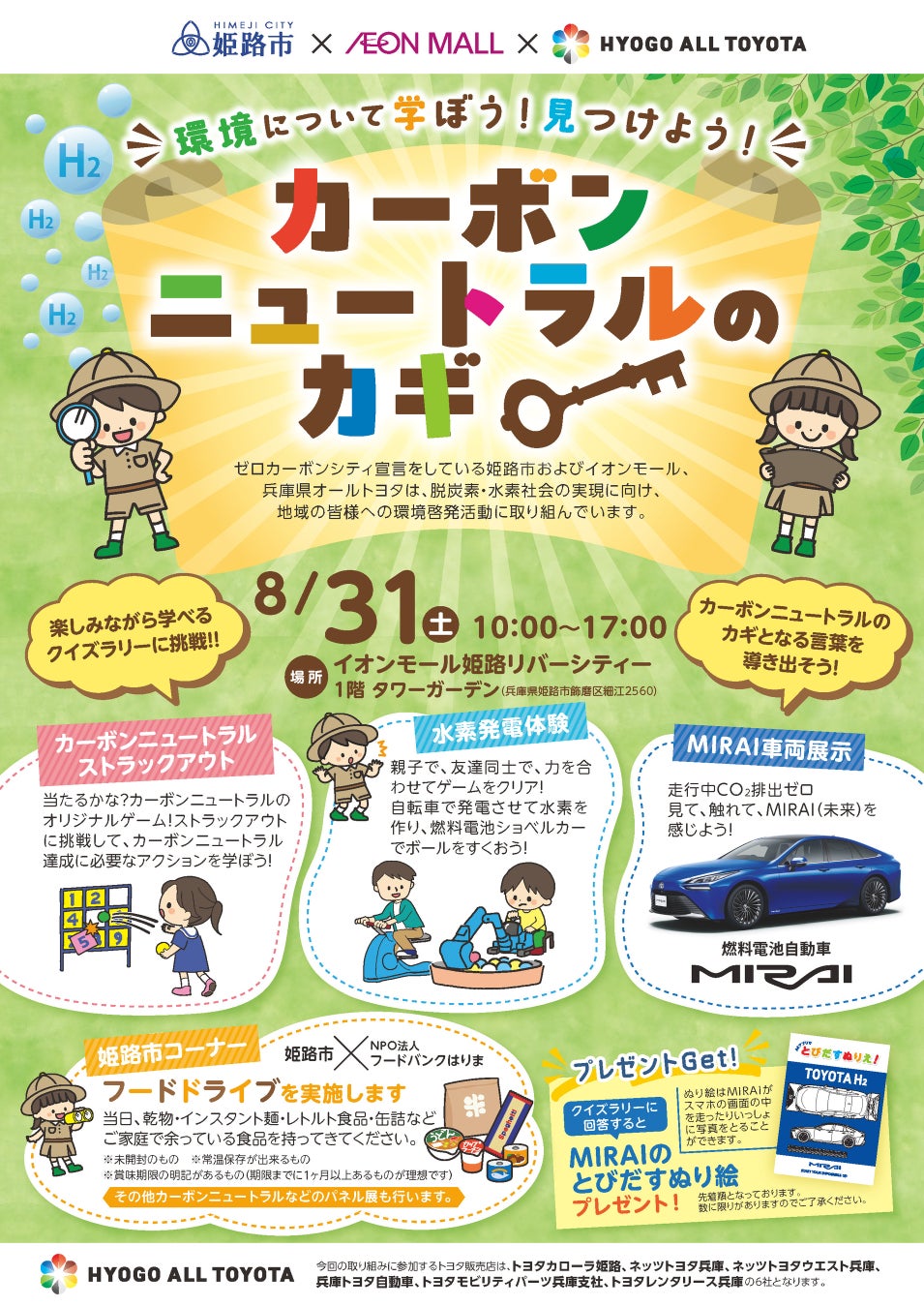 イオンモール姫路リバーシティーにてカーボンニュートラルや水素エネルギーをテーマとした「環境について学ぼう!見つけよう!カーボンニュートラルのカギ」と題したイベントを実施します。