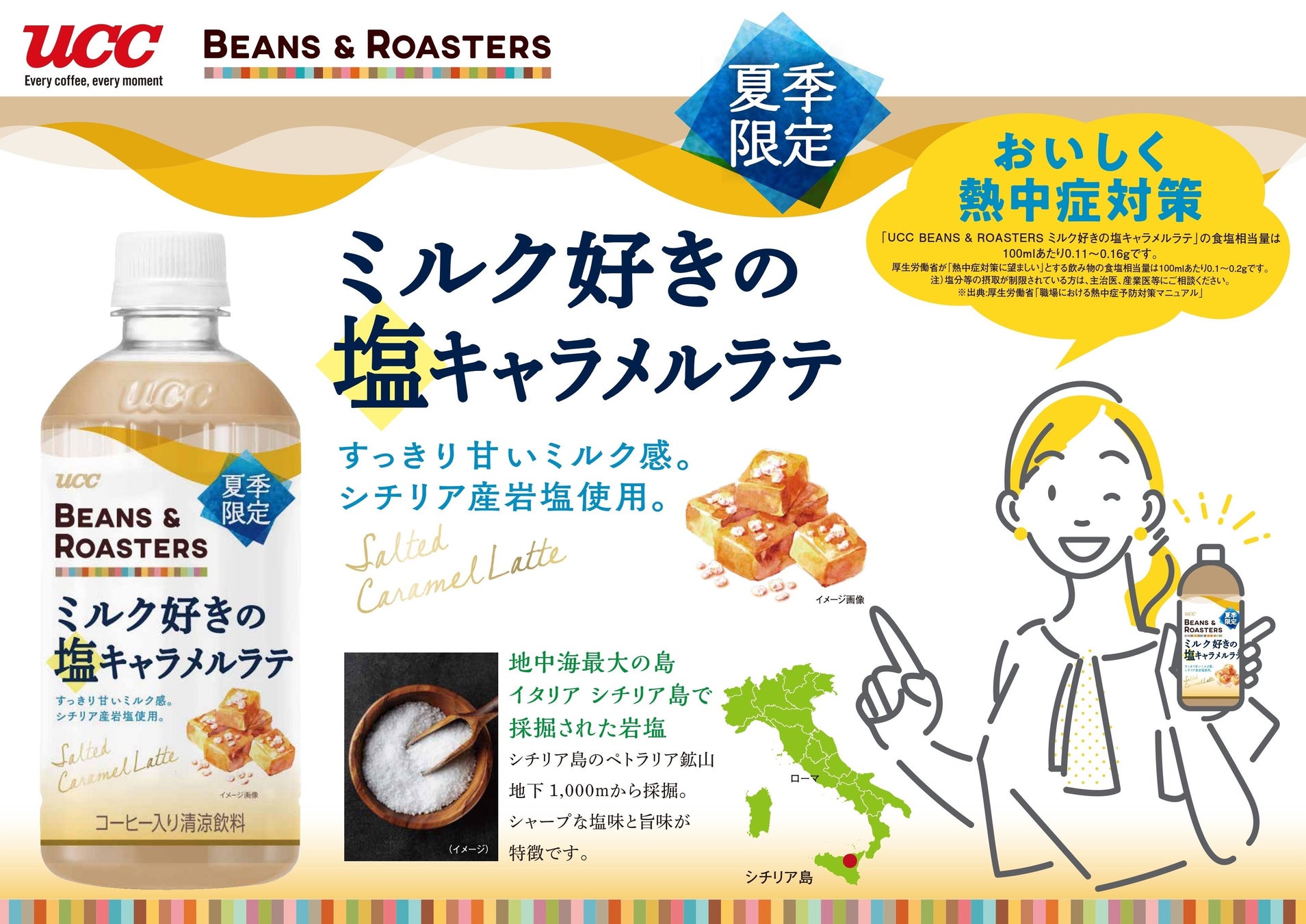 シチリア産岩塩使用の塩キャラメルラテが新登場『UCC BEANS & ROASTERS ミルク好きの塩キャラメルラテ PET450ml』6 月 3 日(月)から全国で夏季限定発売!