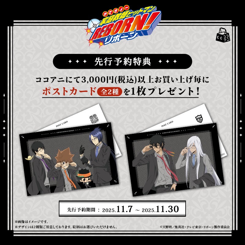 ECサイト「ココアニ」にて、先行予約期間中に対象商品を1会計3,000円(税込)以上お買い上げごとに、「ポストカード(全2種)」をランダムで1枚プレゼントいたします。