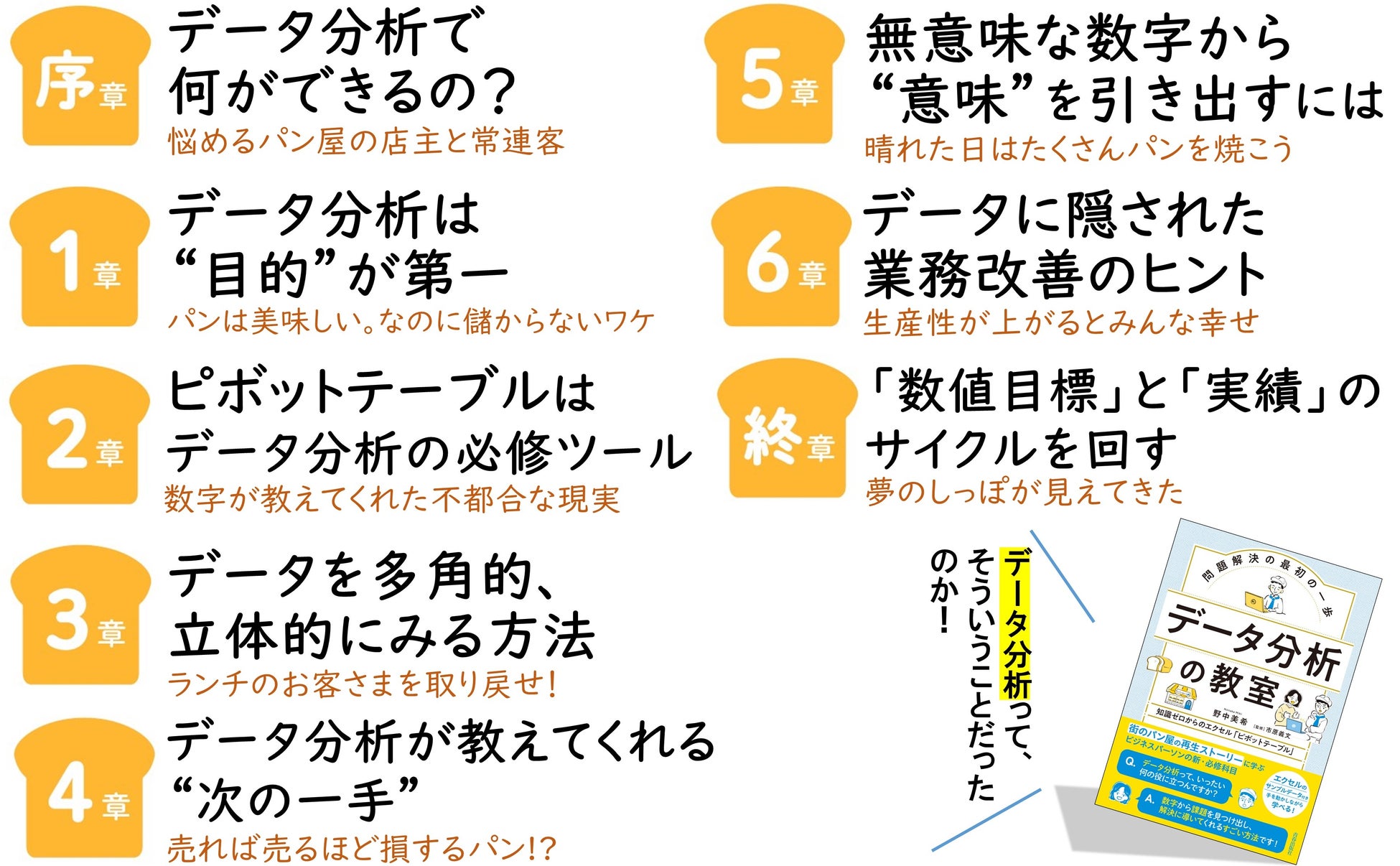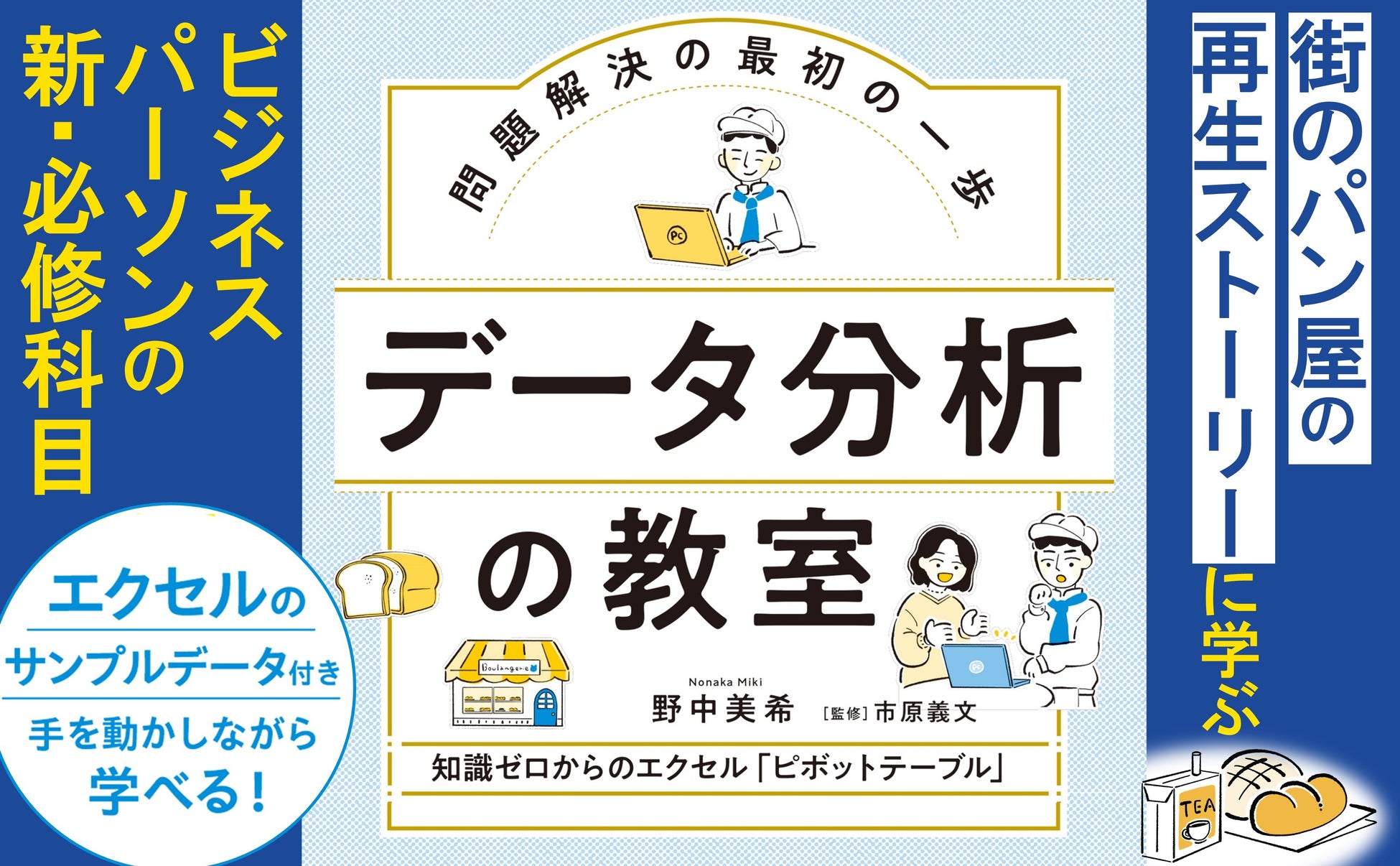 『データ分析の教室』では、相関関係や回帰分析など、ともすれば難しくなりそうな内容をストーリー仕立ての対話形式でわかりやすく解説します。パン屋の再生ストーリーを読み終えるころには、自分の仕事を正しい方向に導く“一生モノの知識”が身についているでしょう。