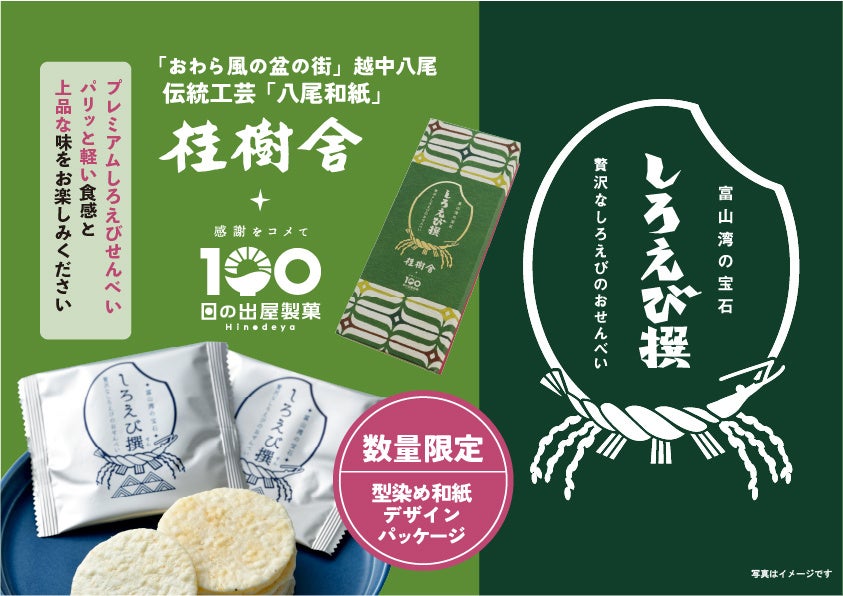 【日の出屋製菓100周年×桂樹舎】しろえびせんべいプレミアムしろえび撰 おわら風の盆の街 越中八尾「桂樹舎」オリジナルパッケージ 数量限定発売 日の出屋製菓産業