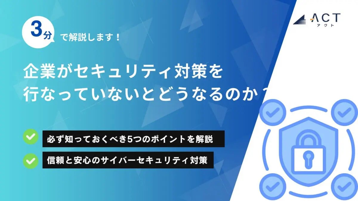 今年30周年を迎え、サイバーセキュリティ事業などを行う株式会社アクト(本社:東京都文京区、代表取締役CEO 小林 智彦 、以下 アクト)は【3分で解説!企業がセキュリティ対策を行なっていないとどうなるのか?】のホワイトペーパーを公開しました。