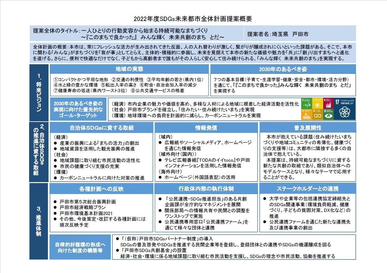 ※戸田市の提案内容に係る概要は画像のとおりです。