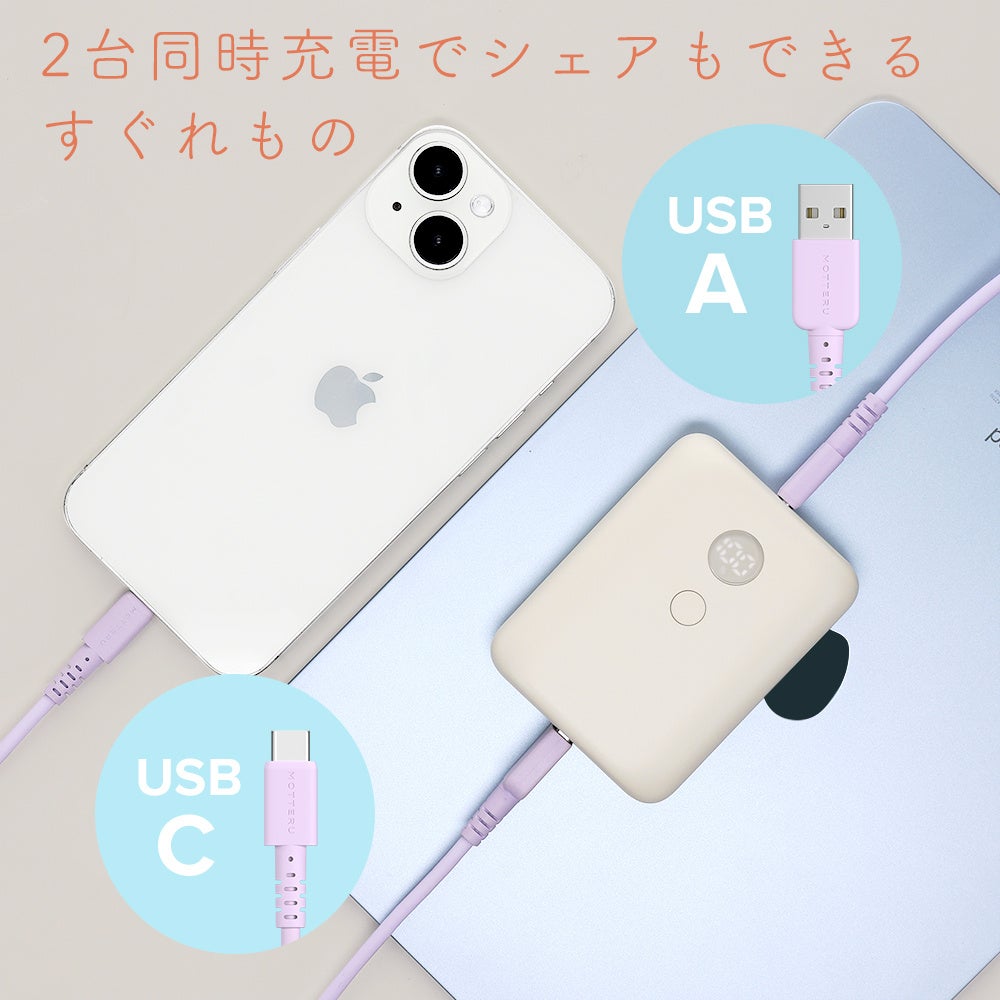 また、USB CポートとUSB Aポートを搭載しており、2台同時に充電することができます。
