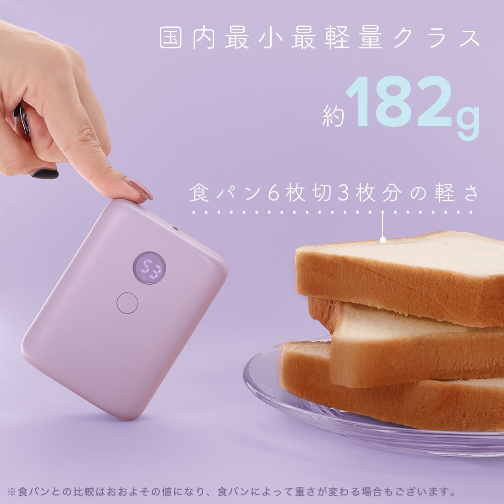 10000mAhの大容量ながら、重さ約182gと国内最小最軽量クラスのコンパクトサイズを実現いたしました。