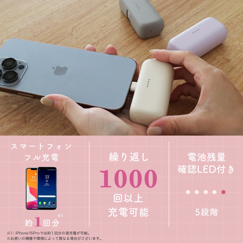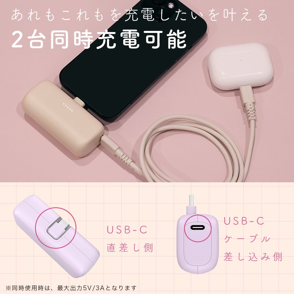 USB-Cコネクタが一体になった5,000mAhのコンパクトモバイルバッテリーです。