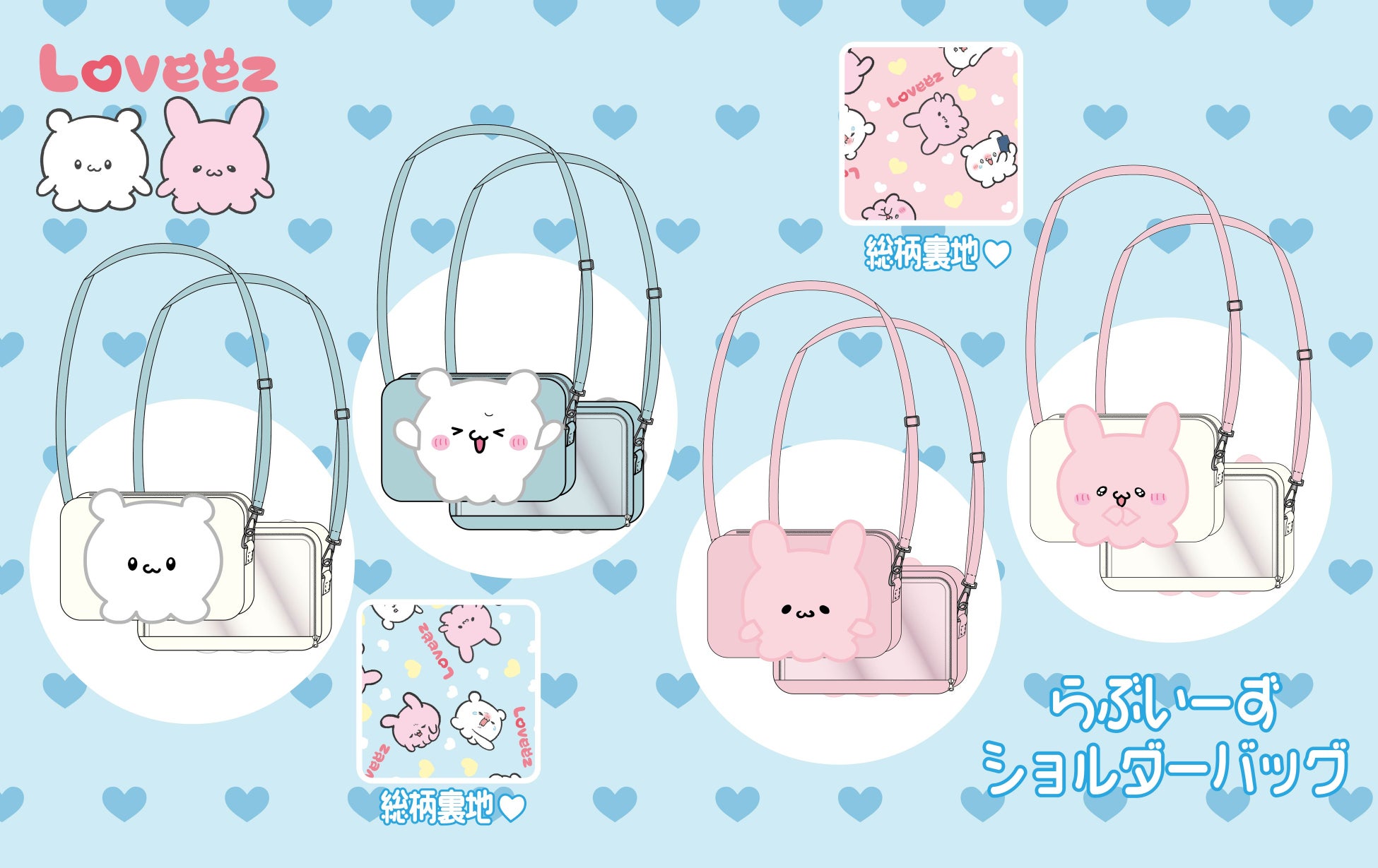 すもっぴとぴょんちーが前面にあしらわれたショルダーバッグ。裏面は透明カバーが付いているので、さりげない推し活にもピッタリです◎