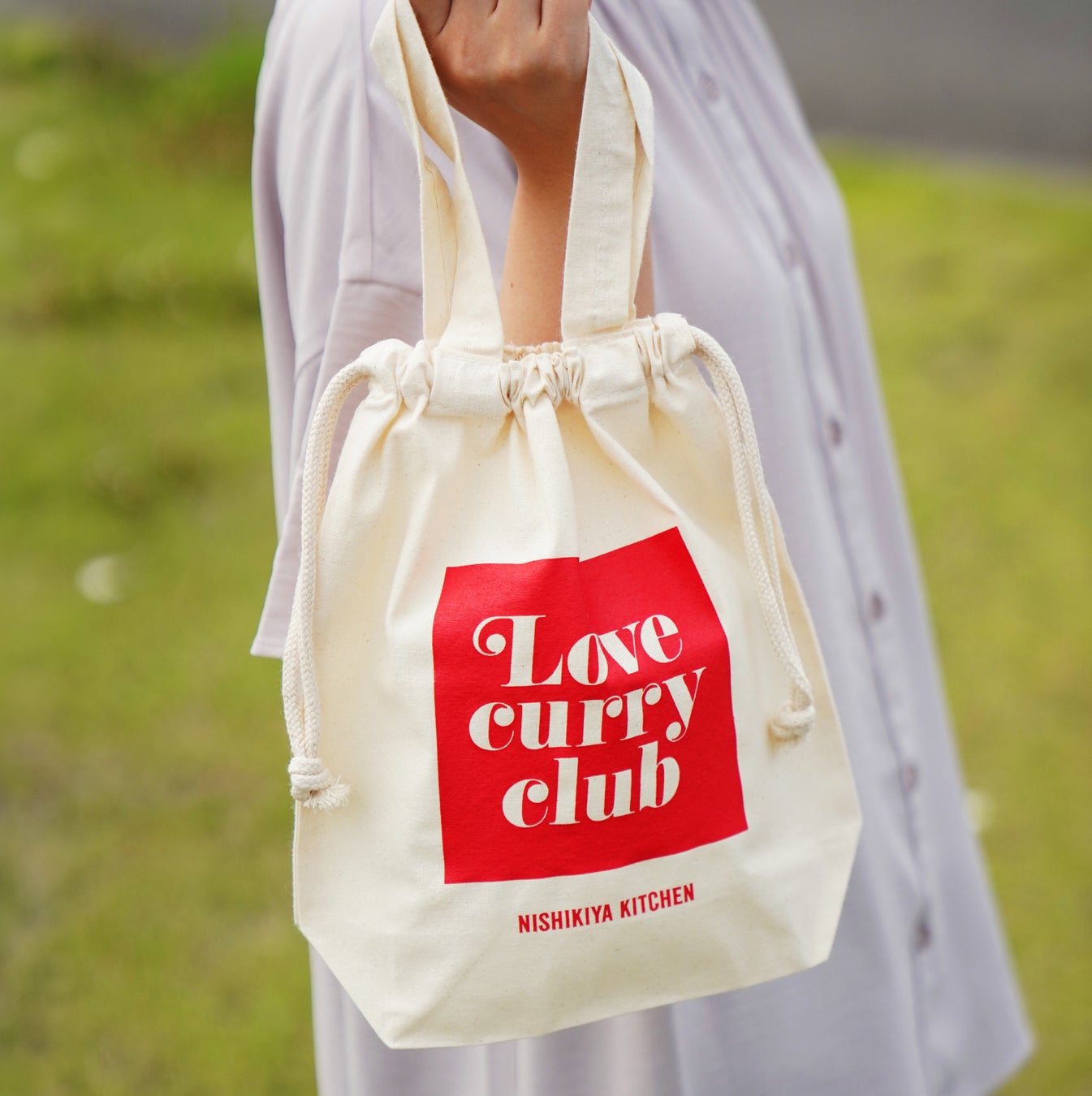 巾着バッグ付きセットはニシキヤキッチン初で、LOVE CURRYキャンペーンのためにデザインした、今年だけの特別な巾着バッグです。