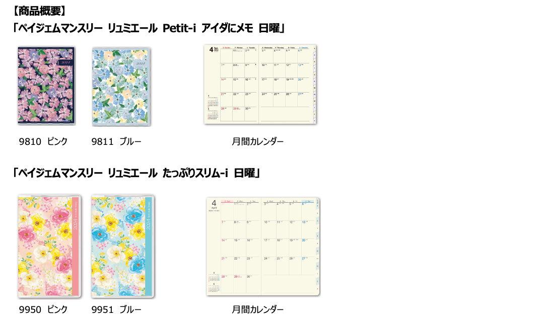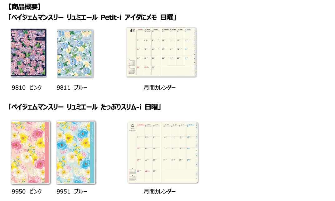 持ち運びに便利な小型サイズと新書サイズに、花柄デザインのマンスリー手帳が新登場しました。各月の間(アイダ)に罫ページが付いているので、月ごとの予定やメモをもう少し書きたいという方におすすめです。