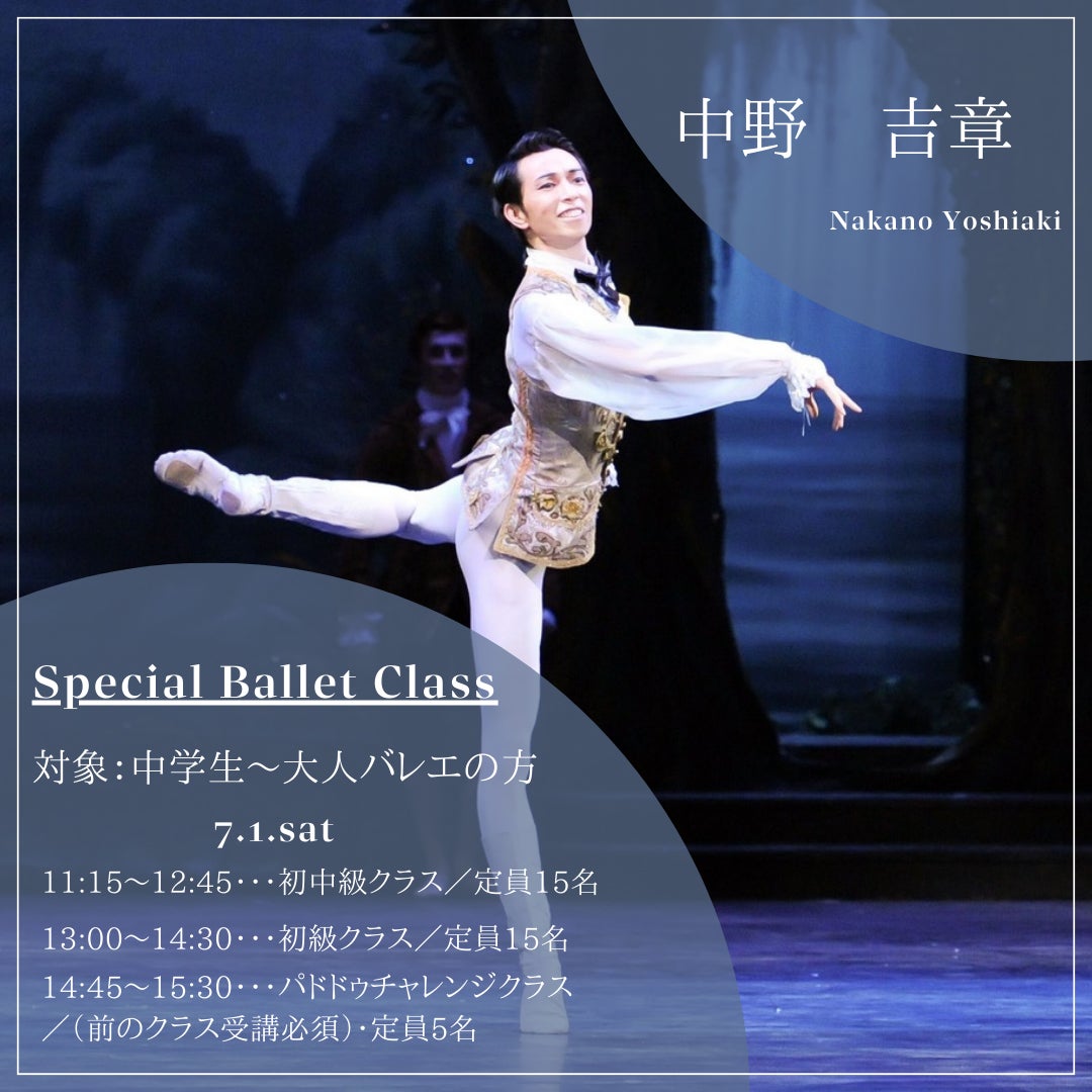 中野吉章特別レッスンはあなたのバレエに大きな影響を与えてくれること間違いなしのバレエレッスンです。皆さまのご参加を心からお待ちしております。