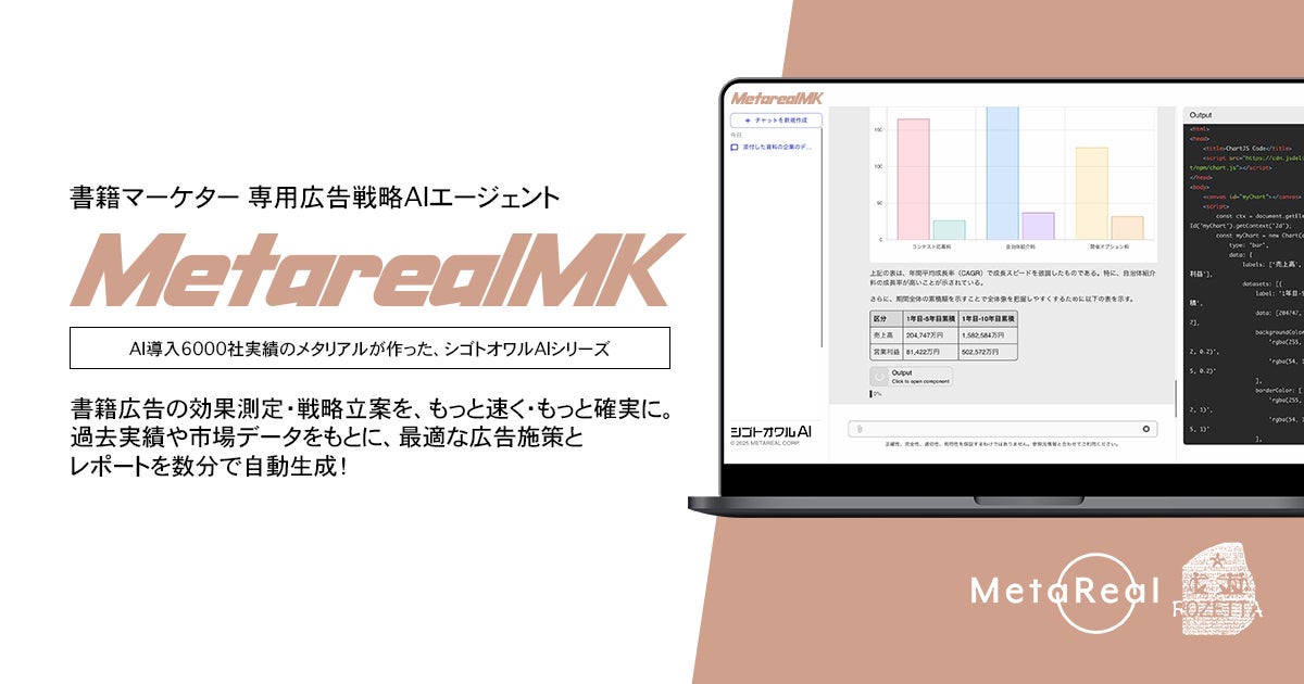【メタリアル・グループ】書籍広告戦略・効果分析レポート作成AIエージェント「Metareal マーケティング(Metareal MK)」7/2提供開始