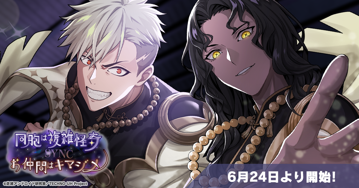 スマホゲーム『テクノロイド ユニゾンハート』が6月24日(月)よりシンクロメモリー第十弾イベントを開催!笠間淳、橘龍丸が演じるサク&ミツキによる「同胞は複雑怪奇 SYNC お仲間はキマジメ」を実装!