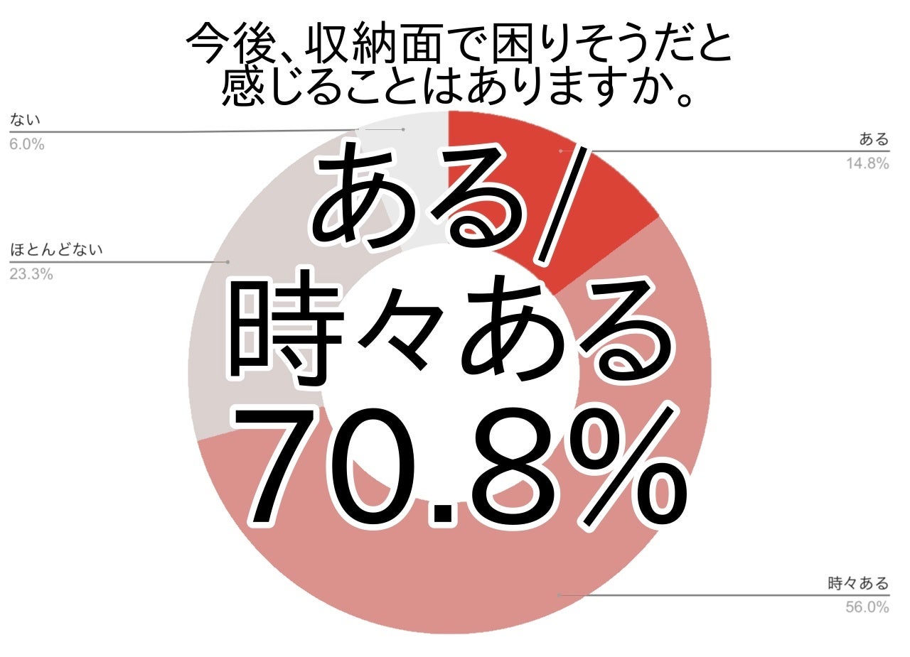 今後収納面で困りそうだと感じている方(ある+時々ある)は約7割(70.8%)でした。