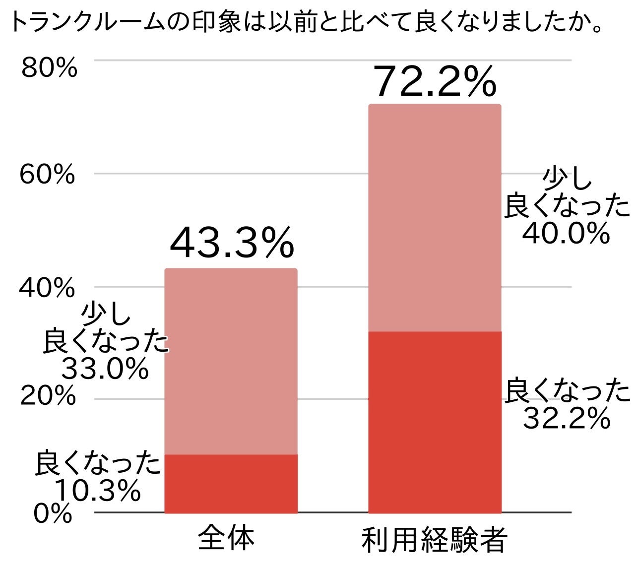 トランクルームの利用経験者だけに絞ると、印象改善度は72.2%でした。