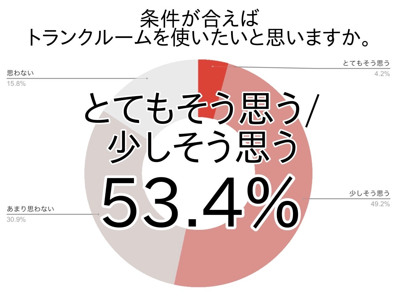 トランクルーム未利用者のうち、条件が合えば使ってみたい(とてもそう思う+少しそう思う)と答えた方は53.4%で半数以上でした。