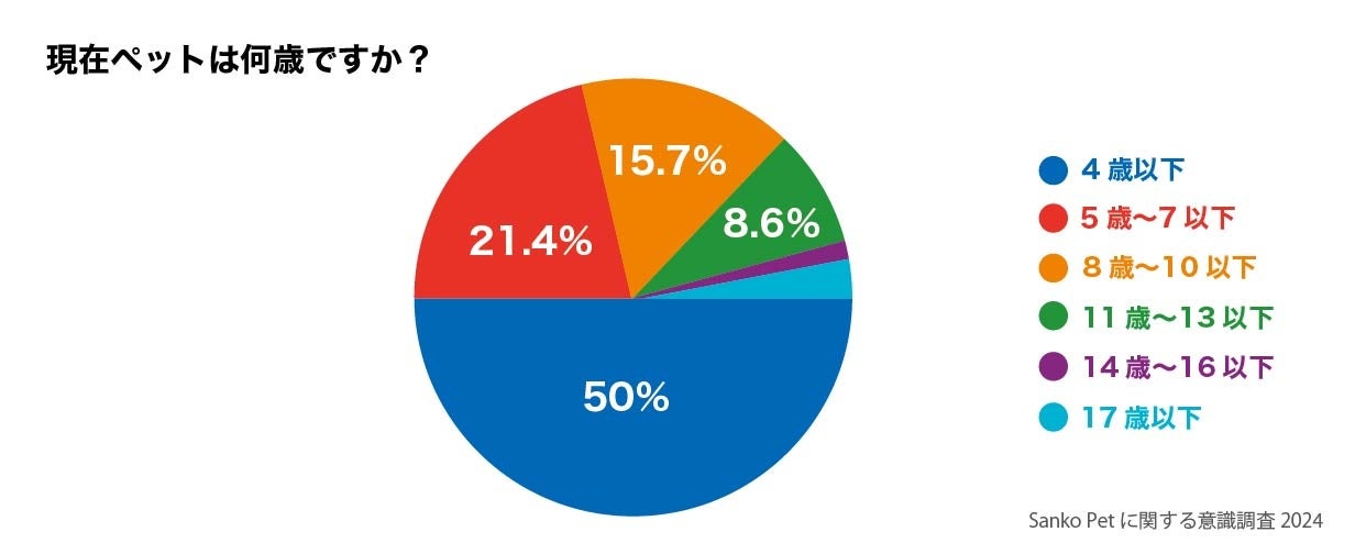 TOPIC①ペットの年齢は4歳以下が半数の一方、8歳以上のシニア層が約3割を占める結果に